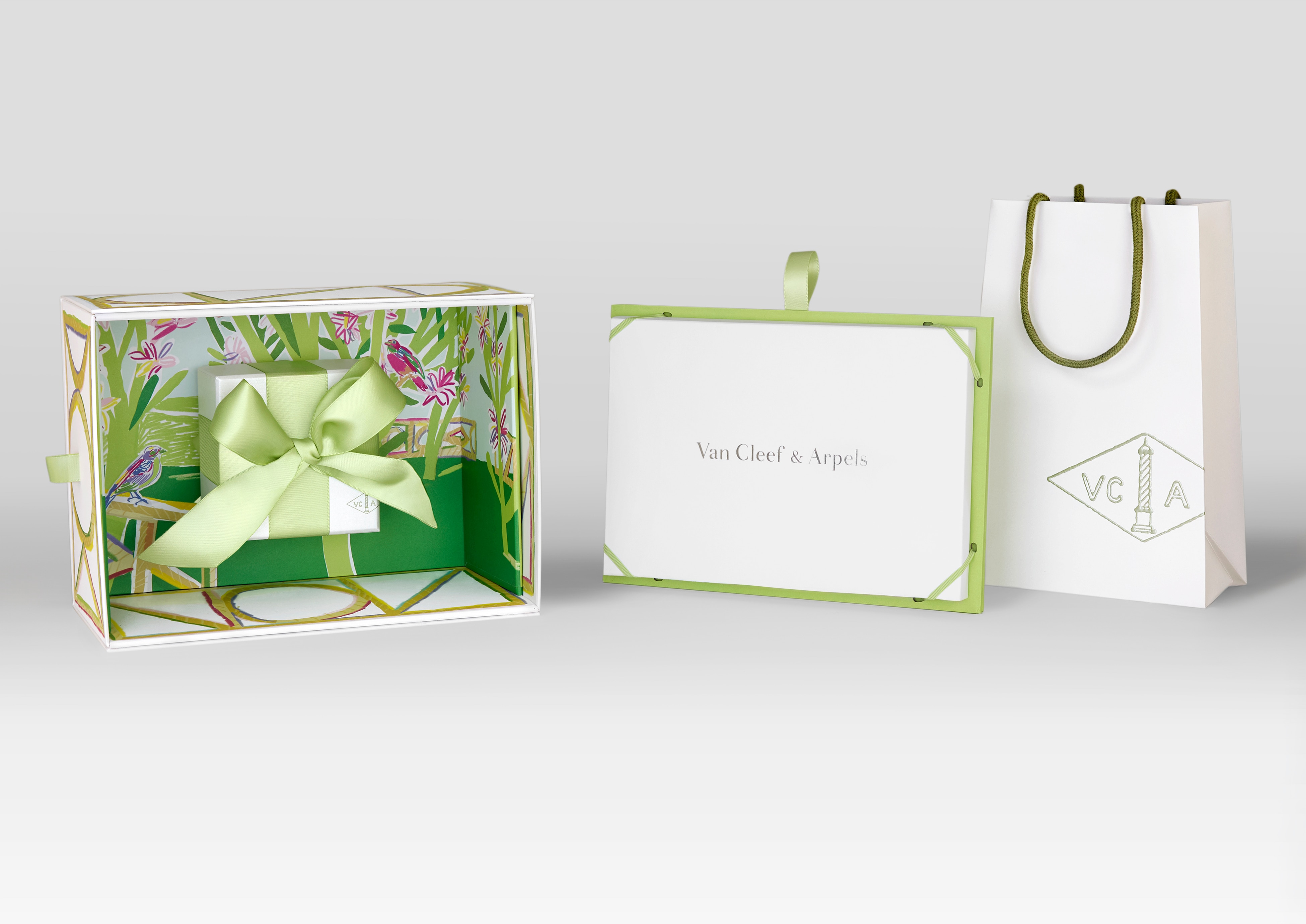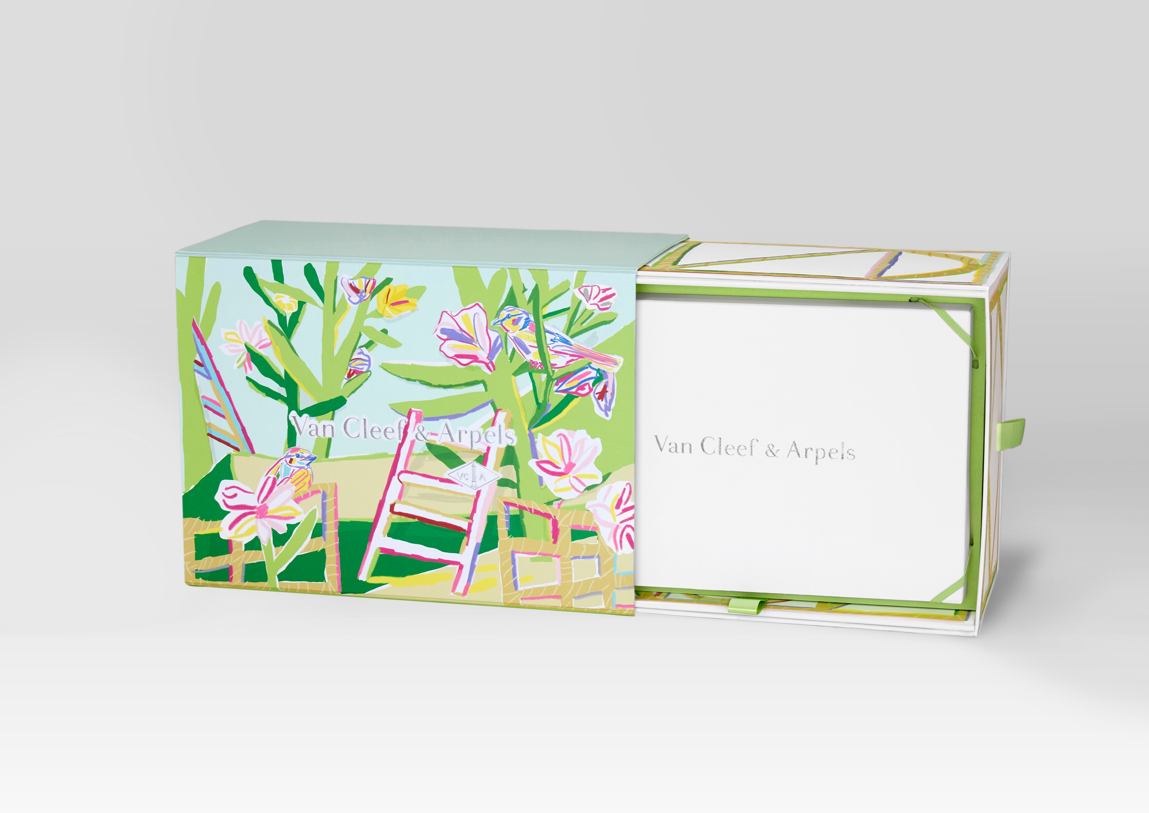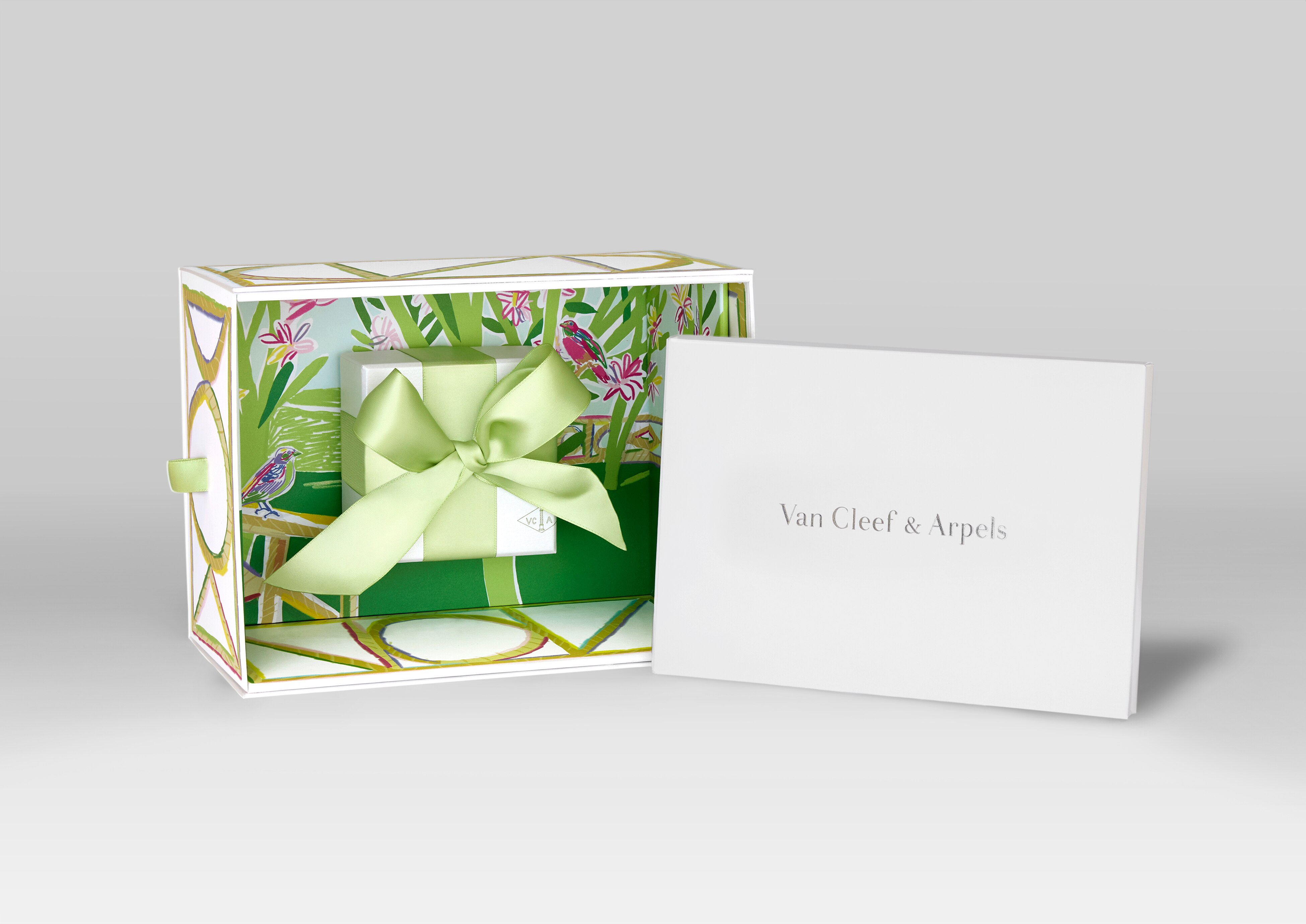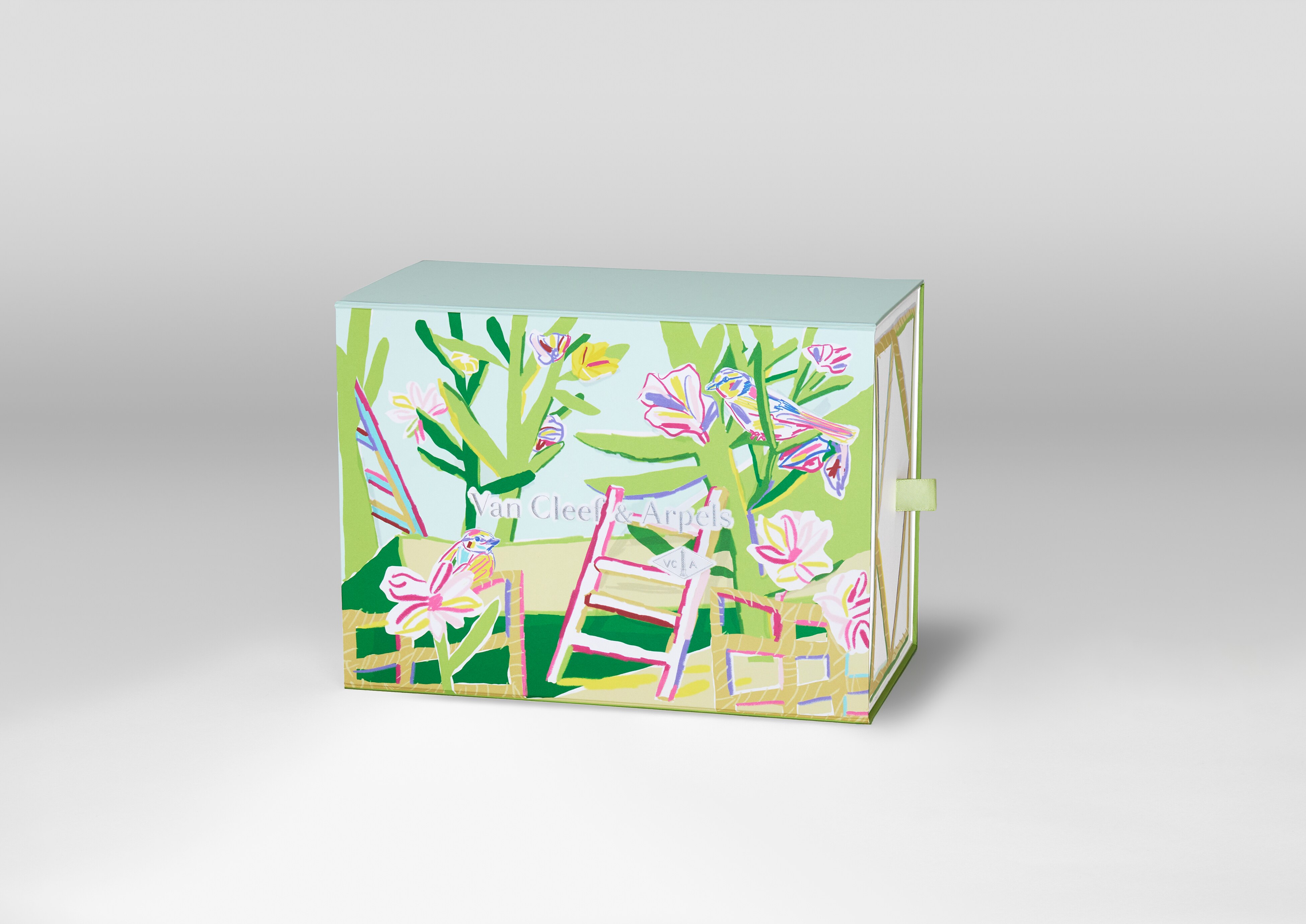 Van Cleef & Arpels梵克雅宝推出春季限定艺术包装*,在这个繁花似锦的季节为您的订单增添迷人魅力。艺术家Alexandre Benjamin Navet为此设计了一款色彩缤纷的礼品盒,令人联想到世家的珍贵花园。每件作品均采用优雅礼盒悉心包装,并附有正品证书以及世家标志性包装袋。