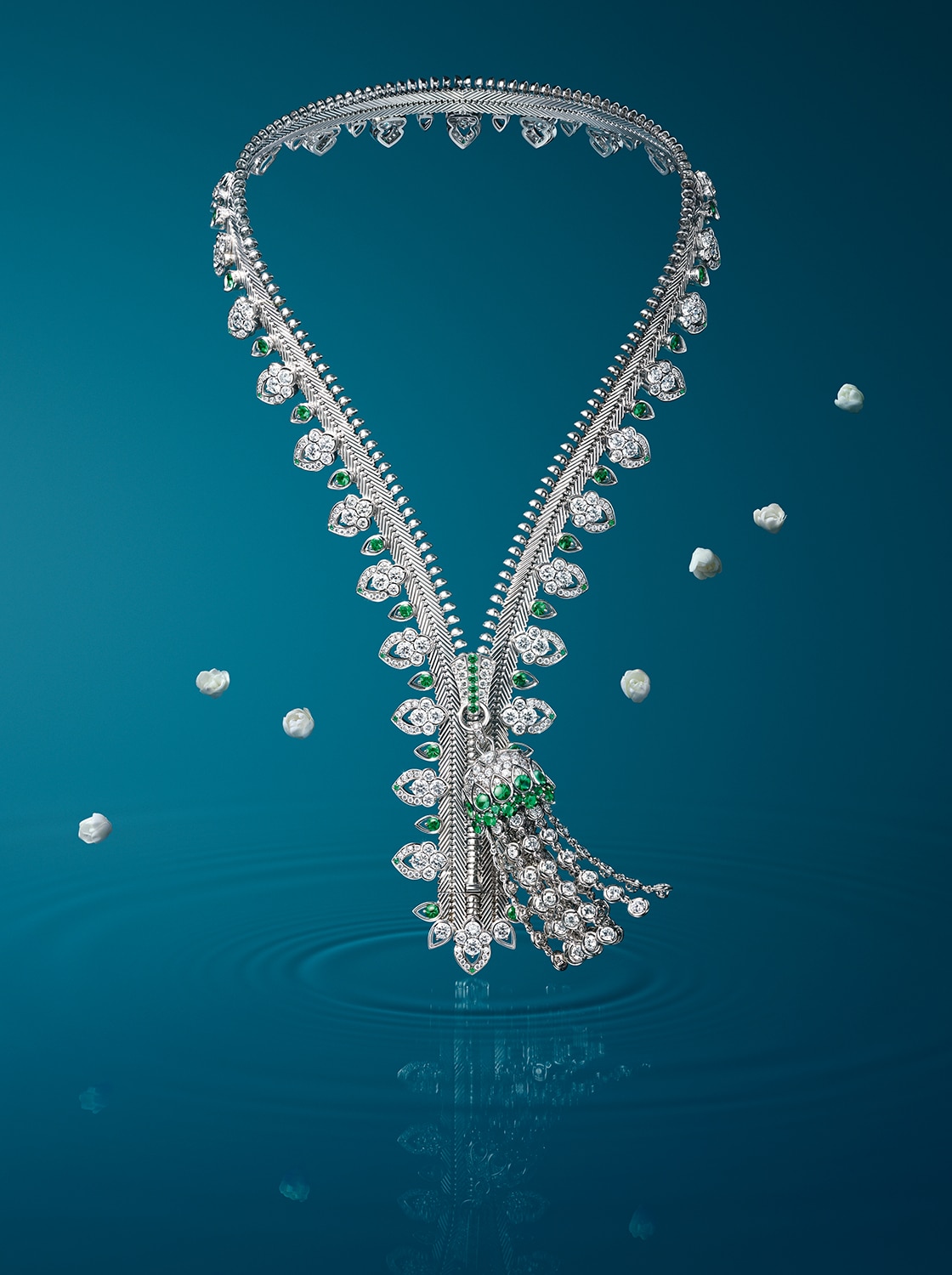 The Zip collection pays homage to the world of couture in more than one way. Aside from recreating the zipper itself, the Maison has also realized filigree lacework, glittering bows, ruby ribbons and sumptuous tassels of precious stones, all honoring the craftsmanship of couturiers.