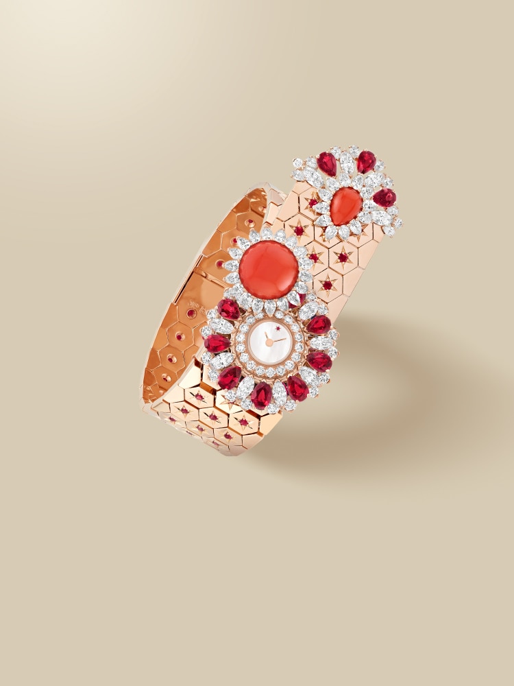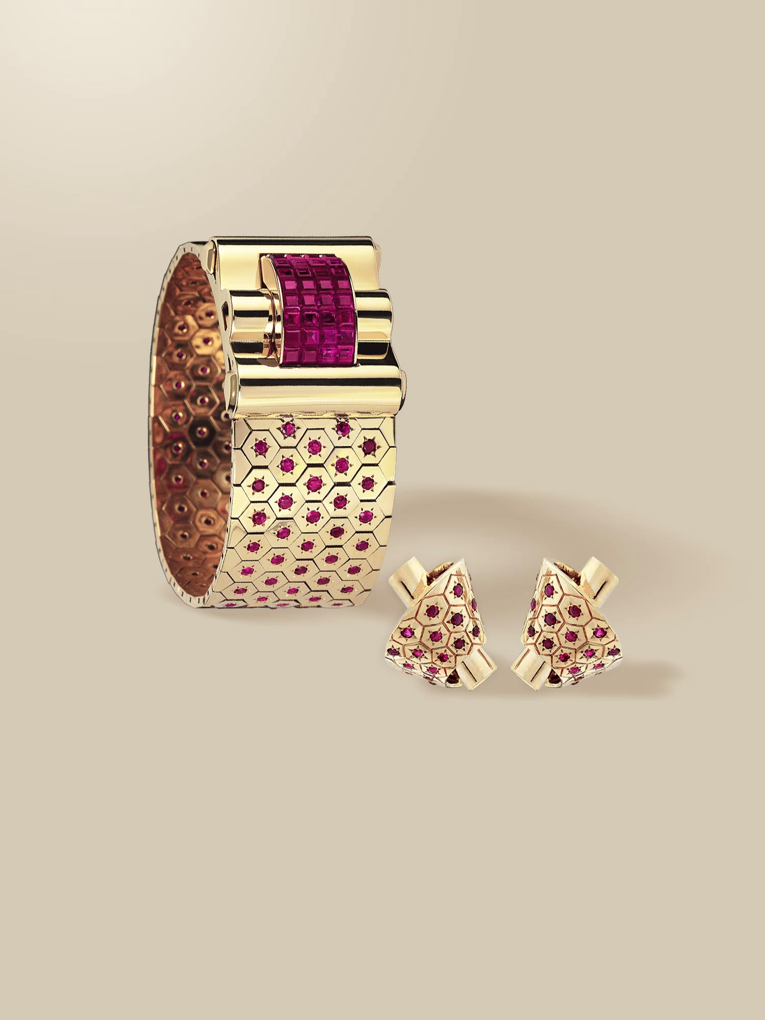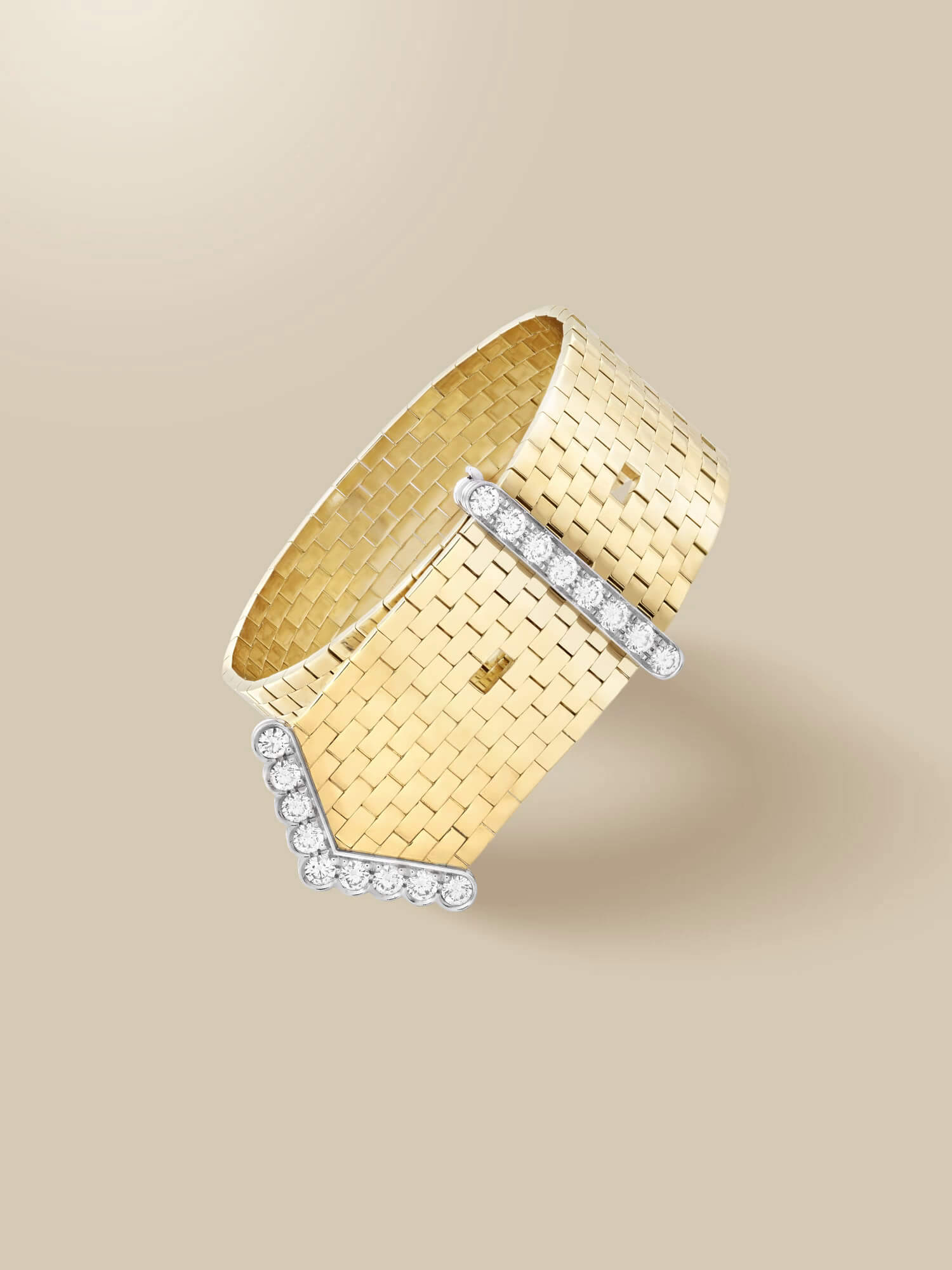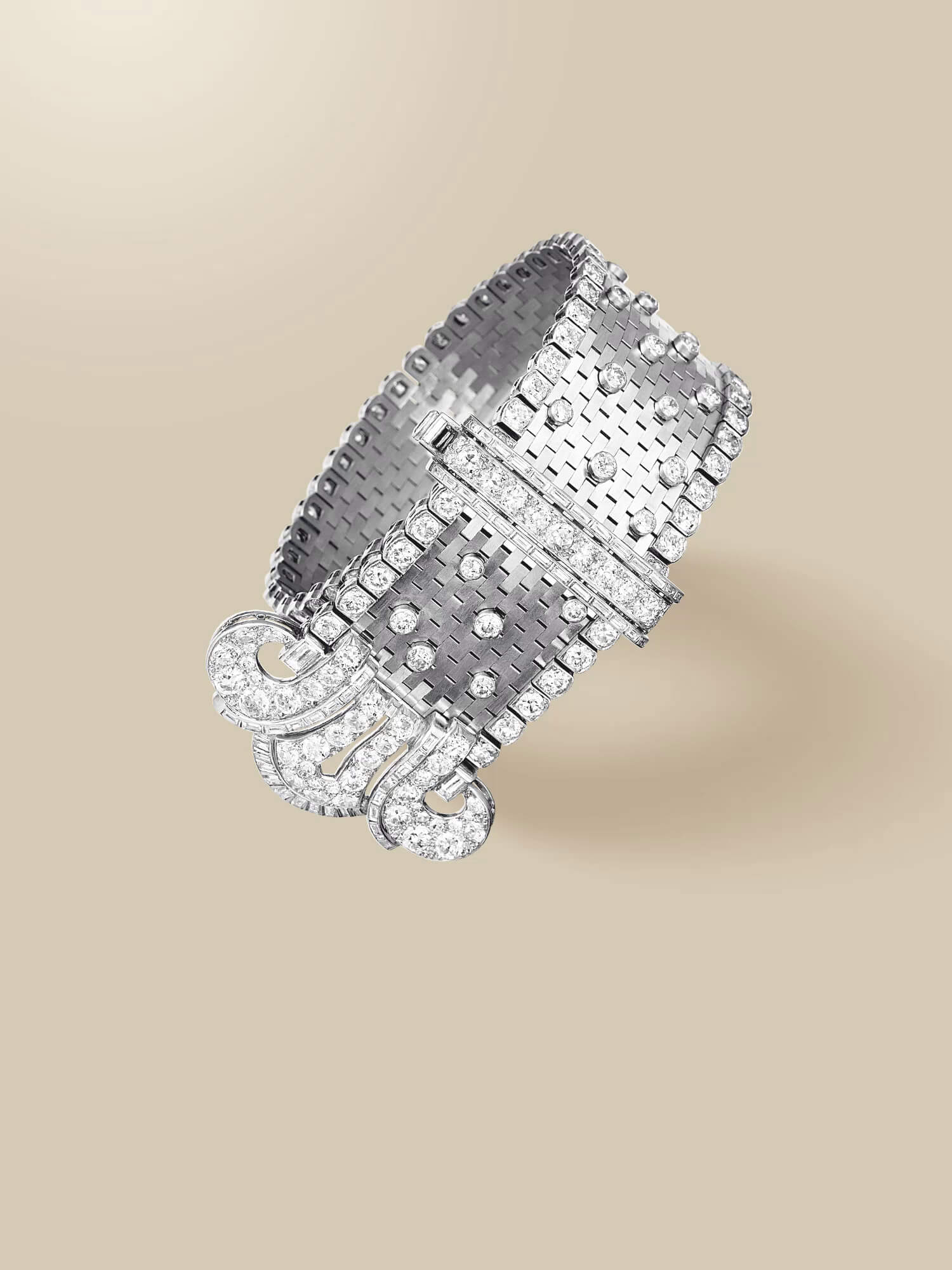 Com a pulseira Ludo, a Van Cleef & Arpels transforma um humilde cinto em excepcional peça de joalheria, com múltiplas variações. A estrutura articulada replica perfeitamente a total funcionalidade de um cinto, com presilha incrustada de pedras e que pode trazer um precioso relógio secreto.
