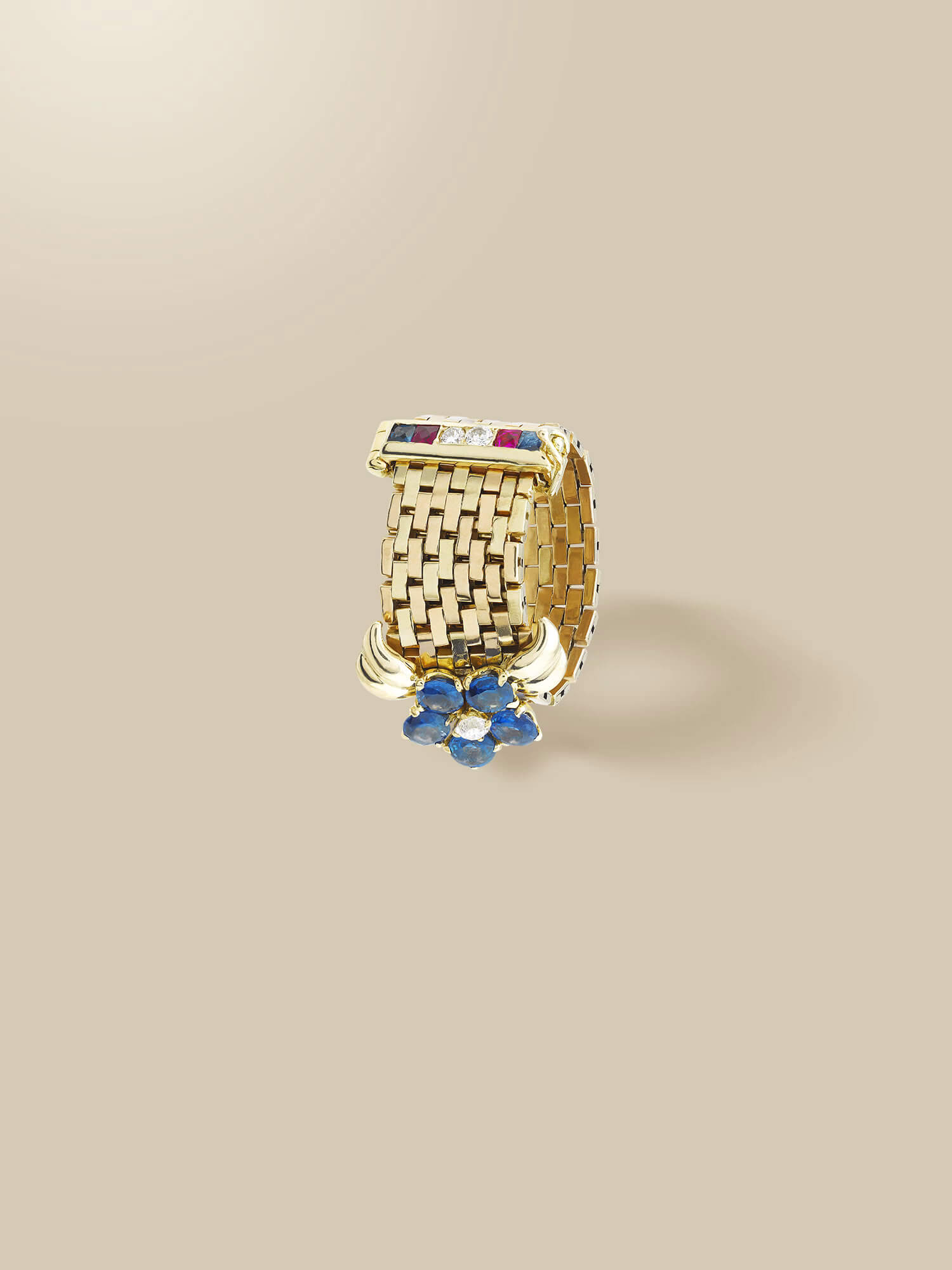 Expressões emblemáticas da criatividade da Maison, os motivos em forma de cinto das criações Ludo homenageiam as estimadas fontes de inspiração da Van Cleef & Arpels. Influenciadas pela alta-costura, elas espelham um drapeado, um nó ou um laço. Buquês coloridos e alegres florescem com toda a vitalidade da natureza. Nas variações Art Déco, elas se desdobram em hipnotizantes linhas e padrões geométricos.