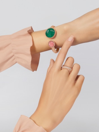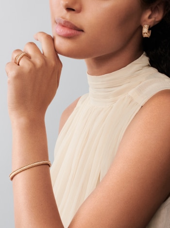 Van Cleef & Arpels deploys all its jewelry expertise to bring the Perlée creations to life. They reflect the Maison’s taste in gemstones, cultivated over more than a century of savoir-faire. Combined with soft and gleaming golden beads, they reveal the creations' full radiance.
