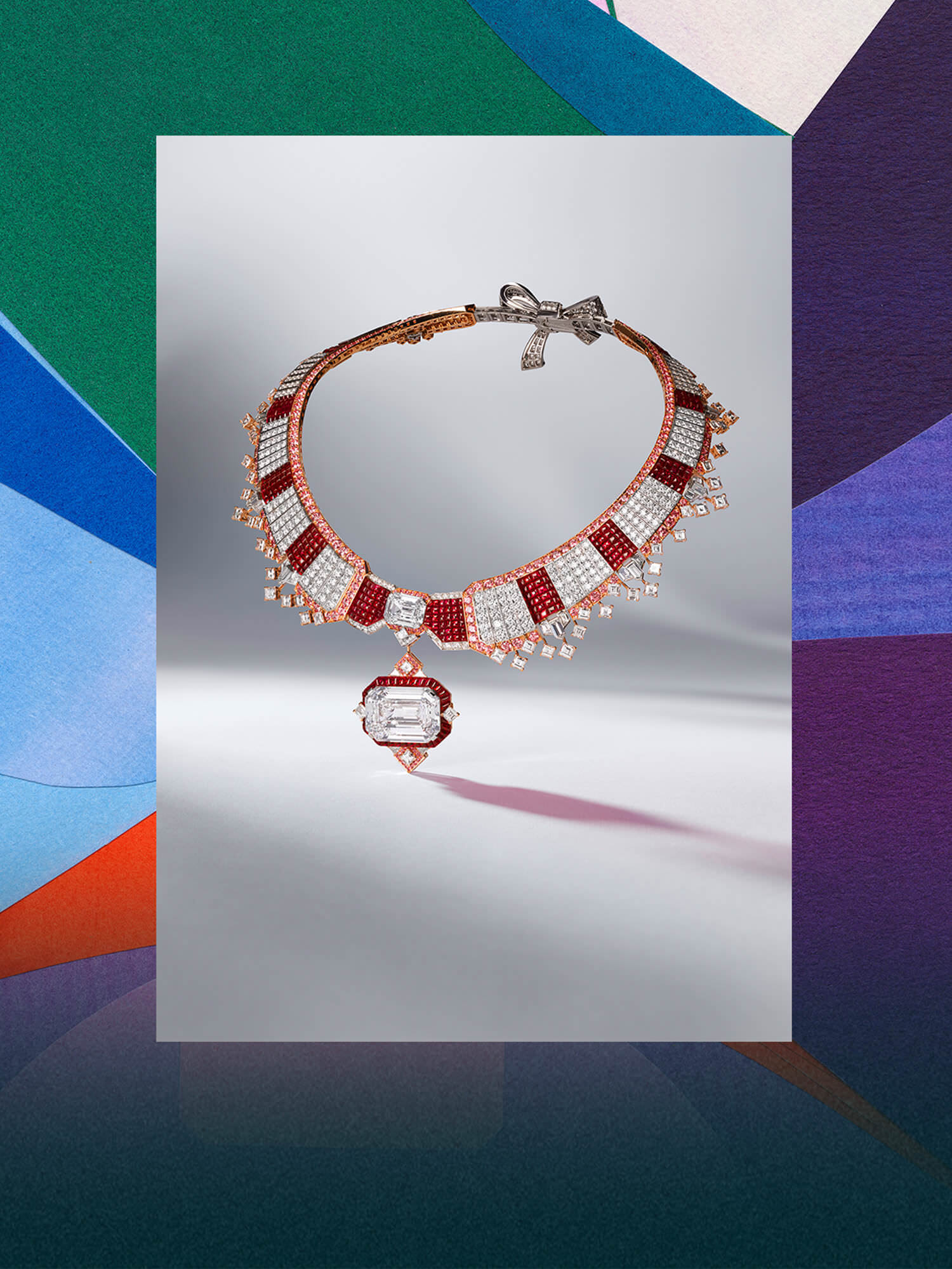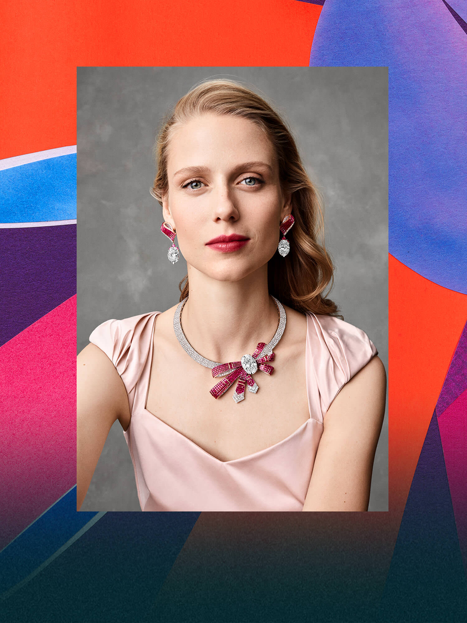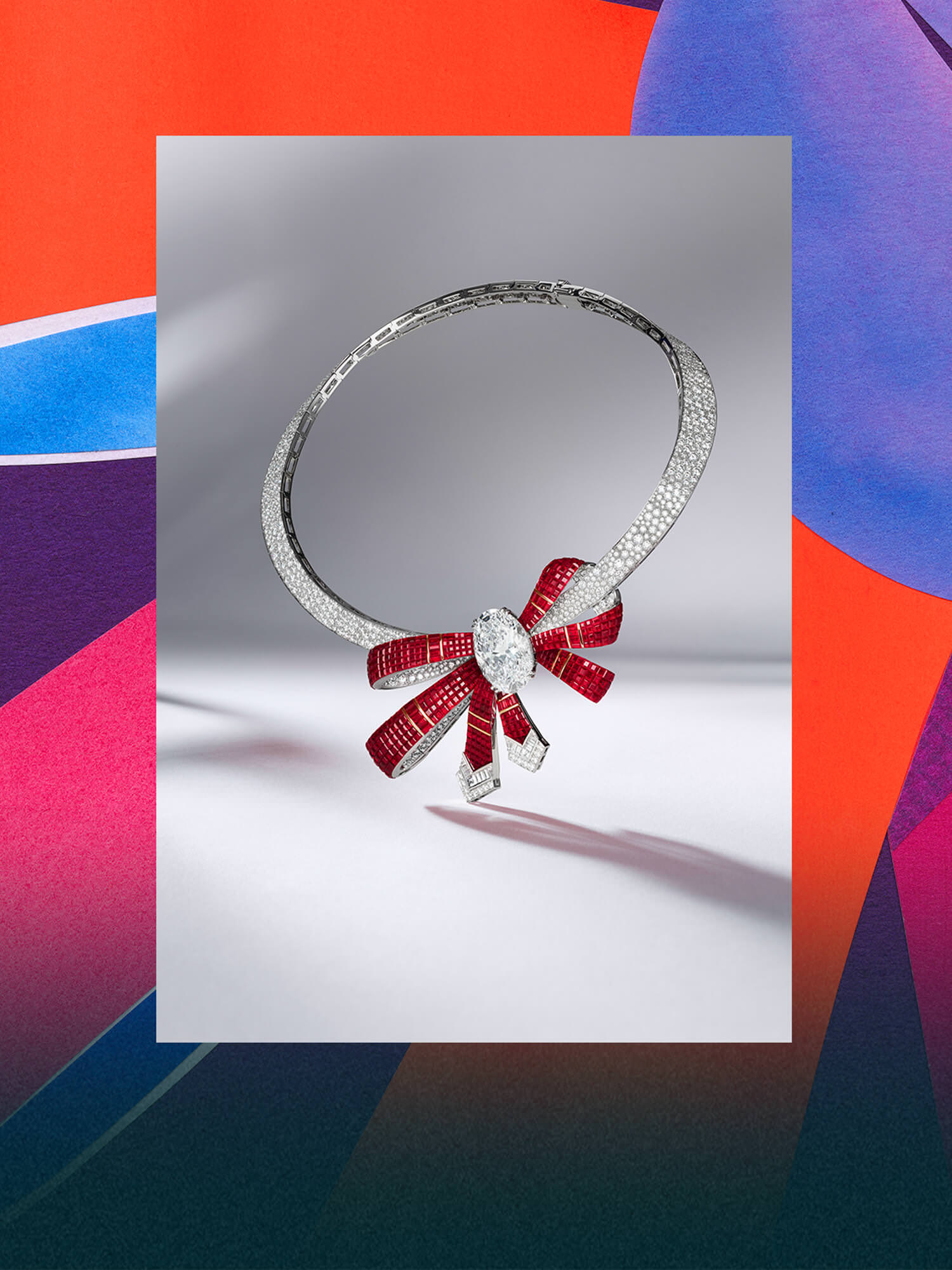 Insufflant de la légèreté et du volume à la joaillerie en diamants, la Maison s’inspire de la couture pour imaginer des parures scintillantes : les gemmes recréent avec une grâce lumineuse le point d’une dentelle, l’enroulement d’un ruban ou l’élégance d’un drapé.