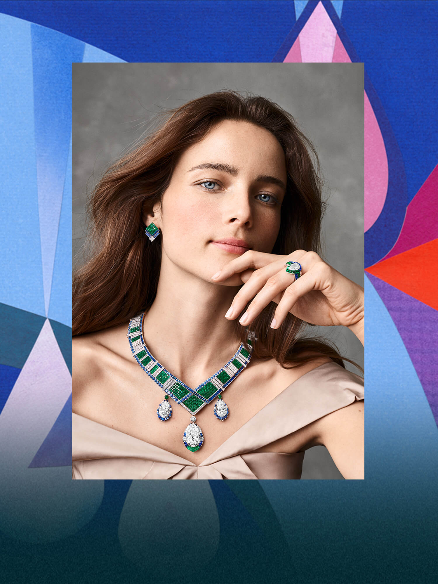 A partir de ce trésor de la nature, Van Cleef & Arpels a créé 25 pièces alliant aux diamants d'exception les reflets veloutés des rubis, saphirs ou émeraudes en Serti Mystérieux, technique emblématique de la Maison.