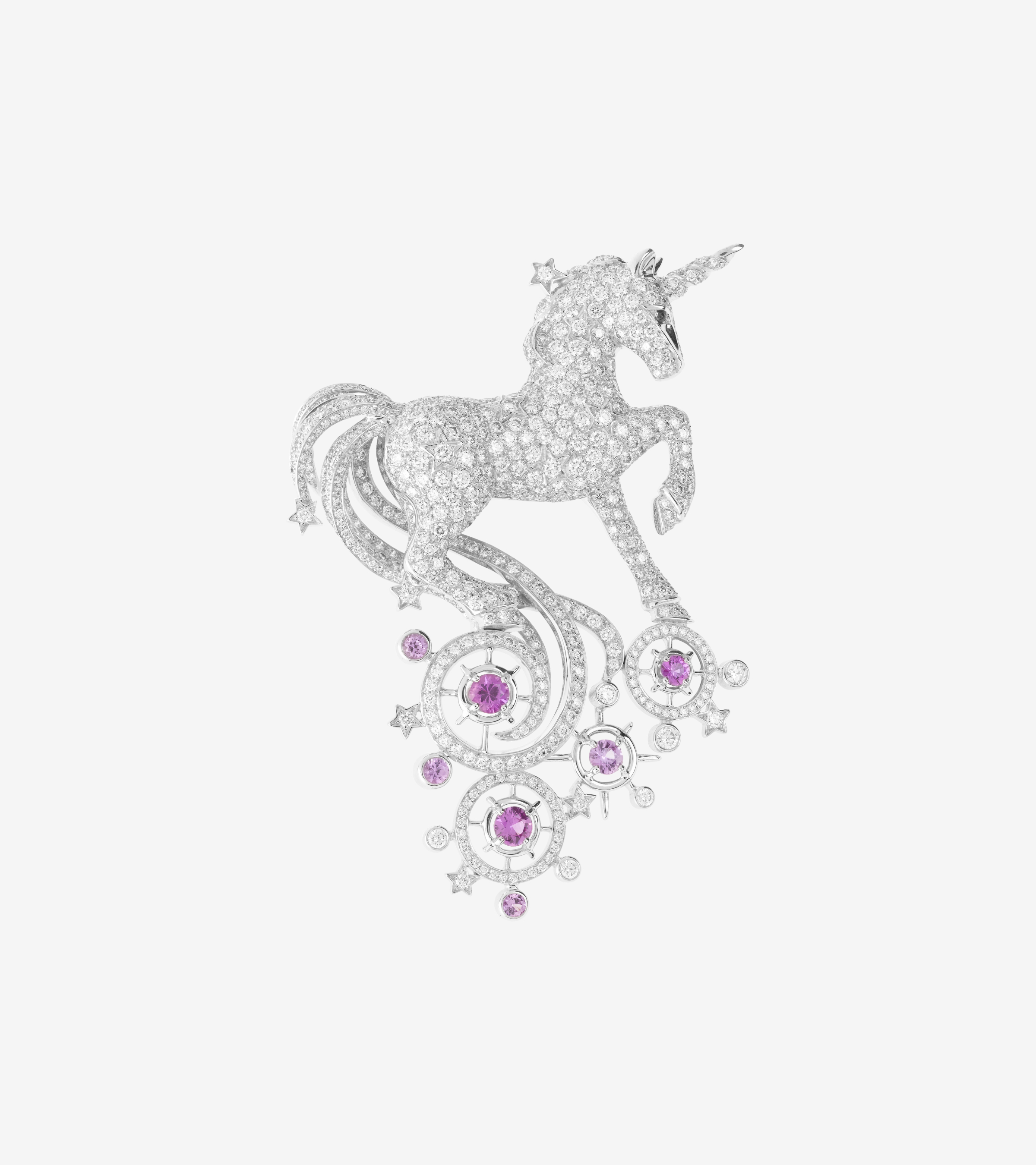 Van Cleef & Arpels mit seiner ganz eigenen, poetischen Sicht auf die Welt feierte in dieser Kollektion das Glück in all seinen unzähligen Dimensionen. Auf einer Reise, die von der Erde bis zum Himmel und von Ost nach West reichte, sammelte die Maison unzählige Glücksbringer, die sie in funkelnde Schmuckstücke verwandelte.