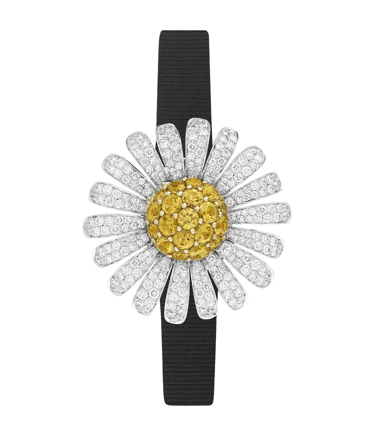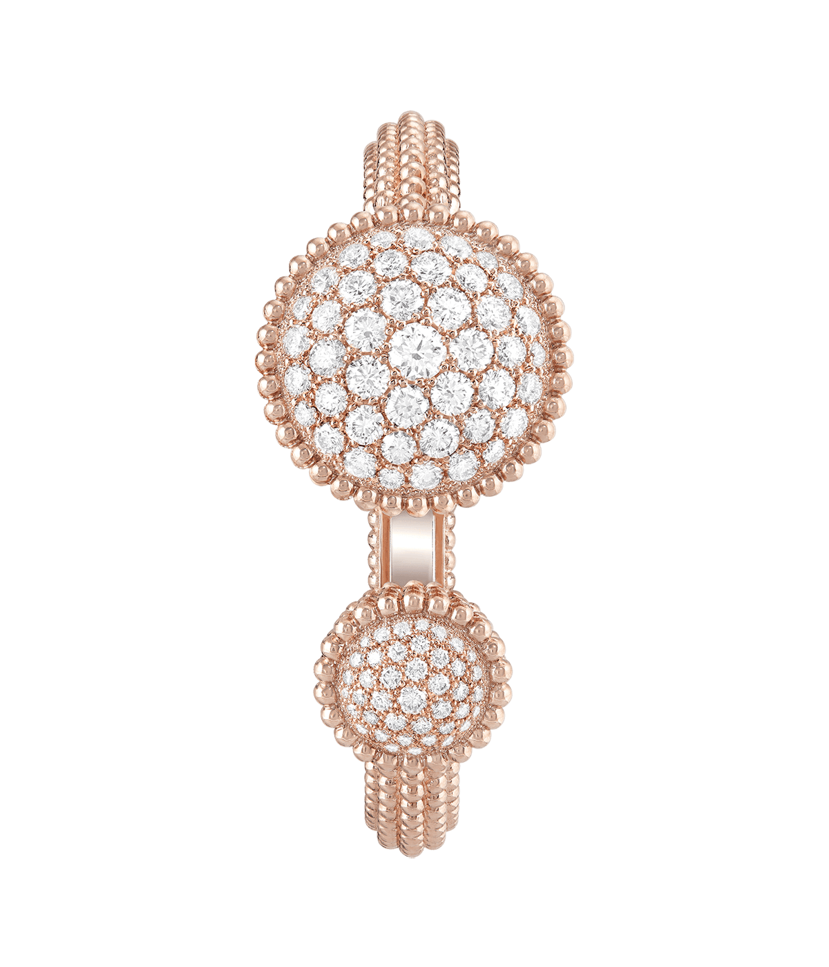 Since the 1930s, the secret watches have been part of the Maison's most iconic collections. Yellow gold and precious stones illuminate the Hawaiian ring, colorful flowers adorn the Passe-Partout watch, and generous volumes animate the Ludo watches.
