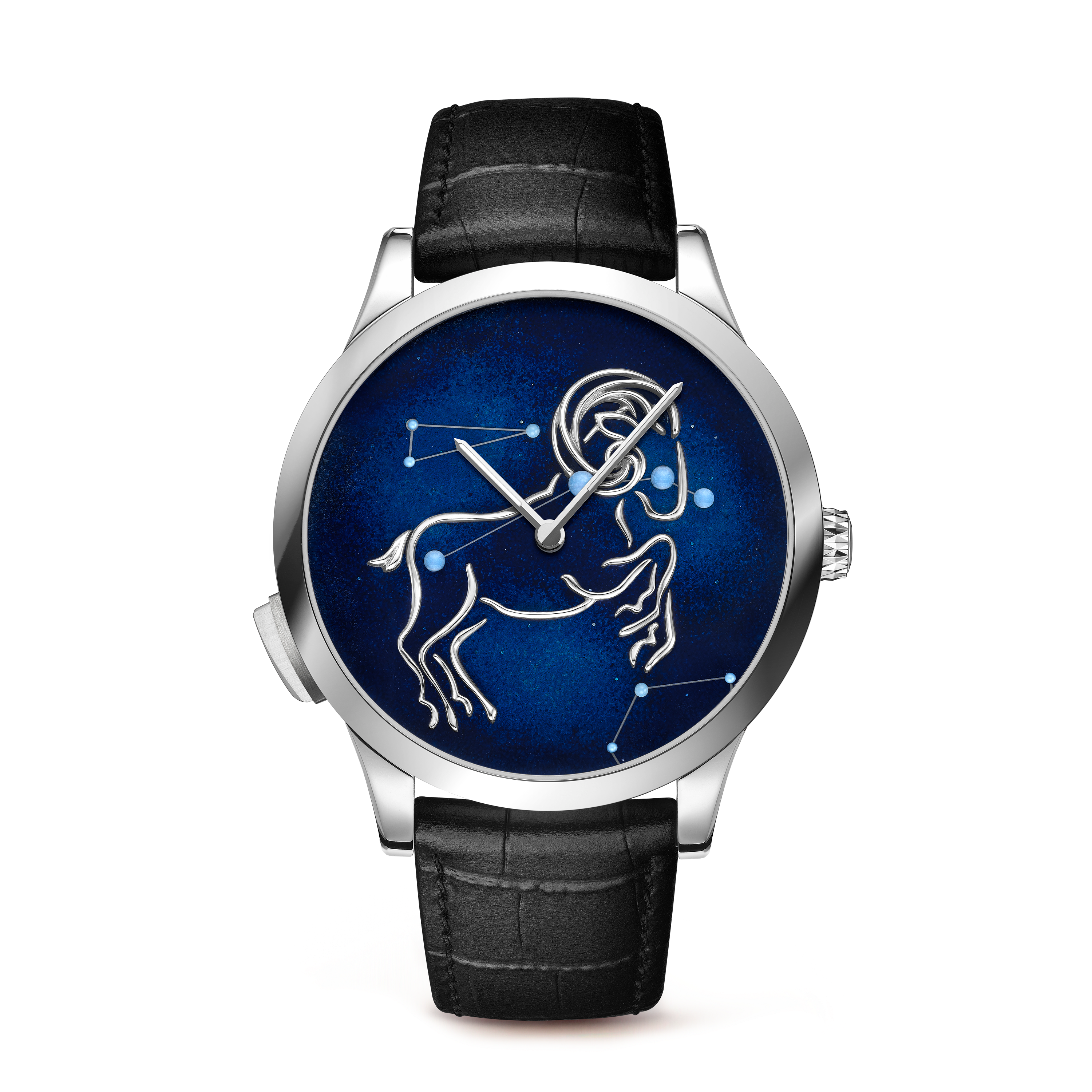 宇宙のリズムと調和する人生へといざなう、ミッドナイト ゾディアック リュミヌー メンズ ウォッチ。特別なライトアップ オンデマンドを搭載した12モデルで、星の煌めきを再現しました。ロジウムコーティングが施された18Kホワイトゴールドでひとつひとつ精緻に描かれた12星座が、スパークリーブルーのエナメルの夜空に映し出されます。火のエレメントに調和する牡羊座は、力強さ、決断力を象徴しています。