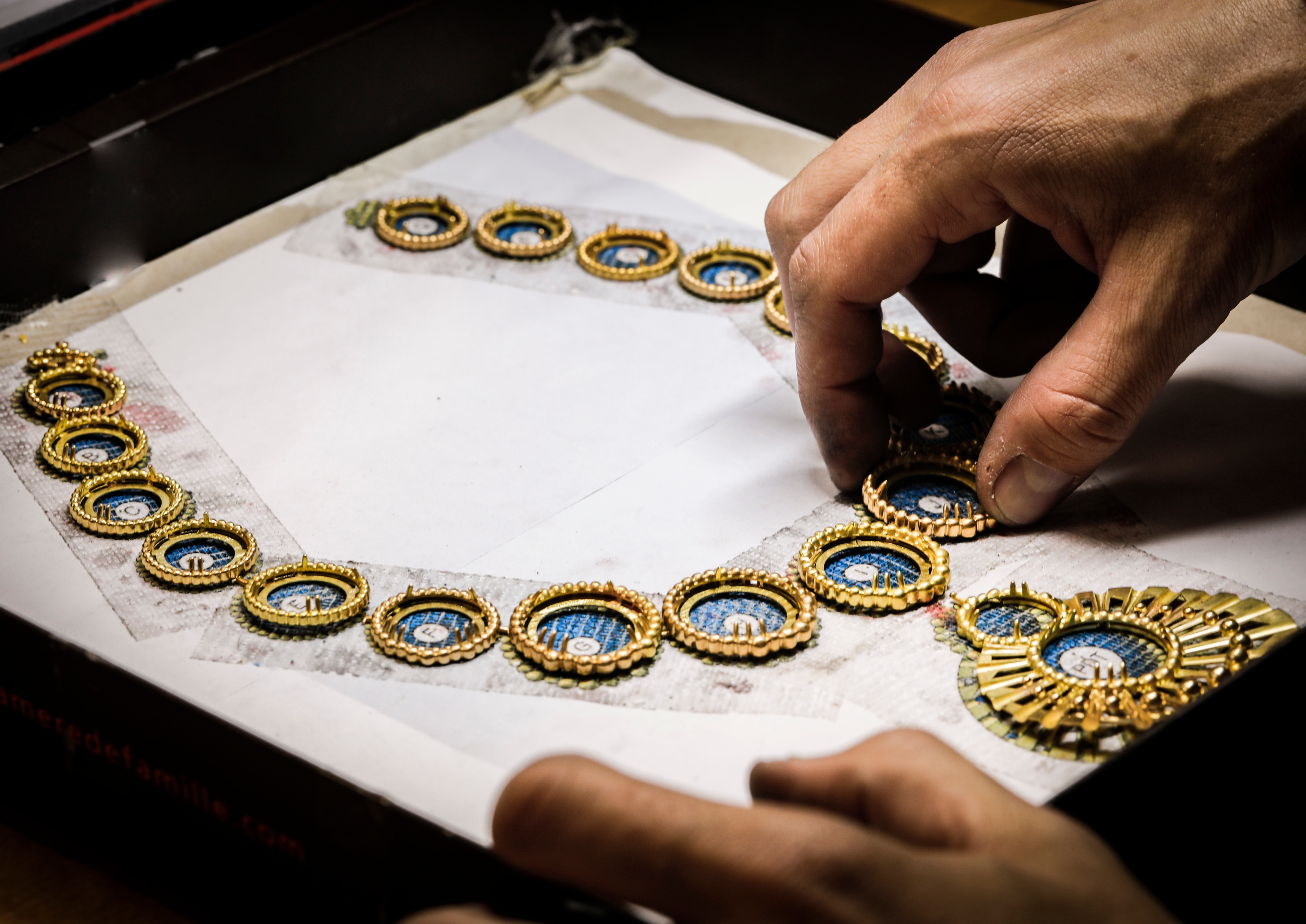 The fruit of more than 800 hours of work, the Brume de turquoise necklace call forth a symphony of glimmering reflections and captures a Mediterranean landscape resplendent with a celestial palette and a sunny glow.