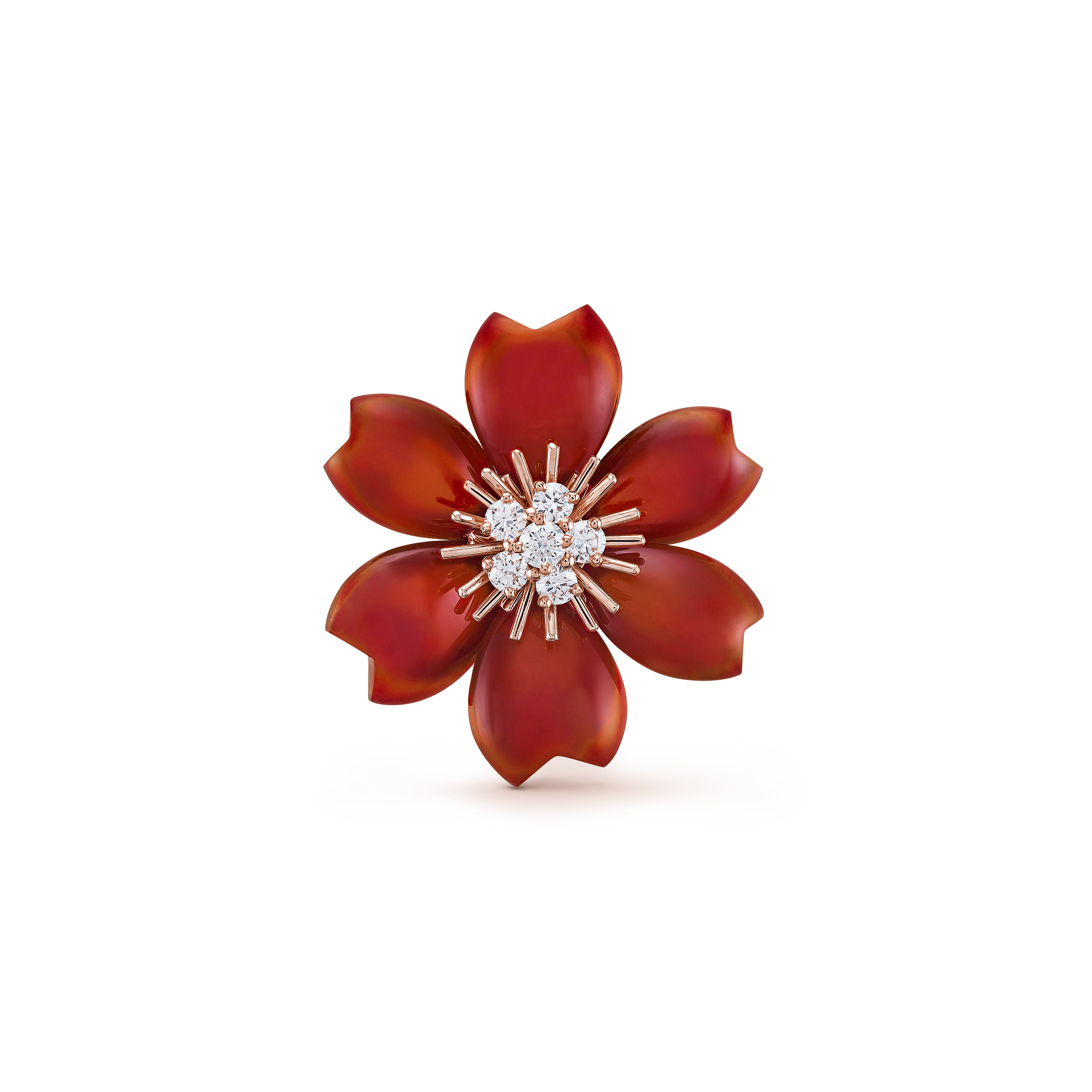 Rose de Noël clip pendant, small model 18K rose gold, Carnelian, Diamond