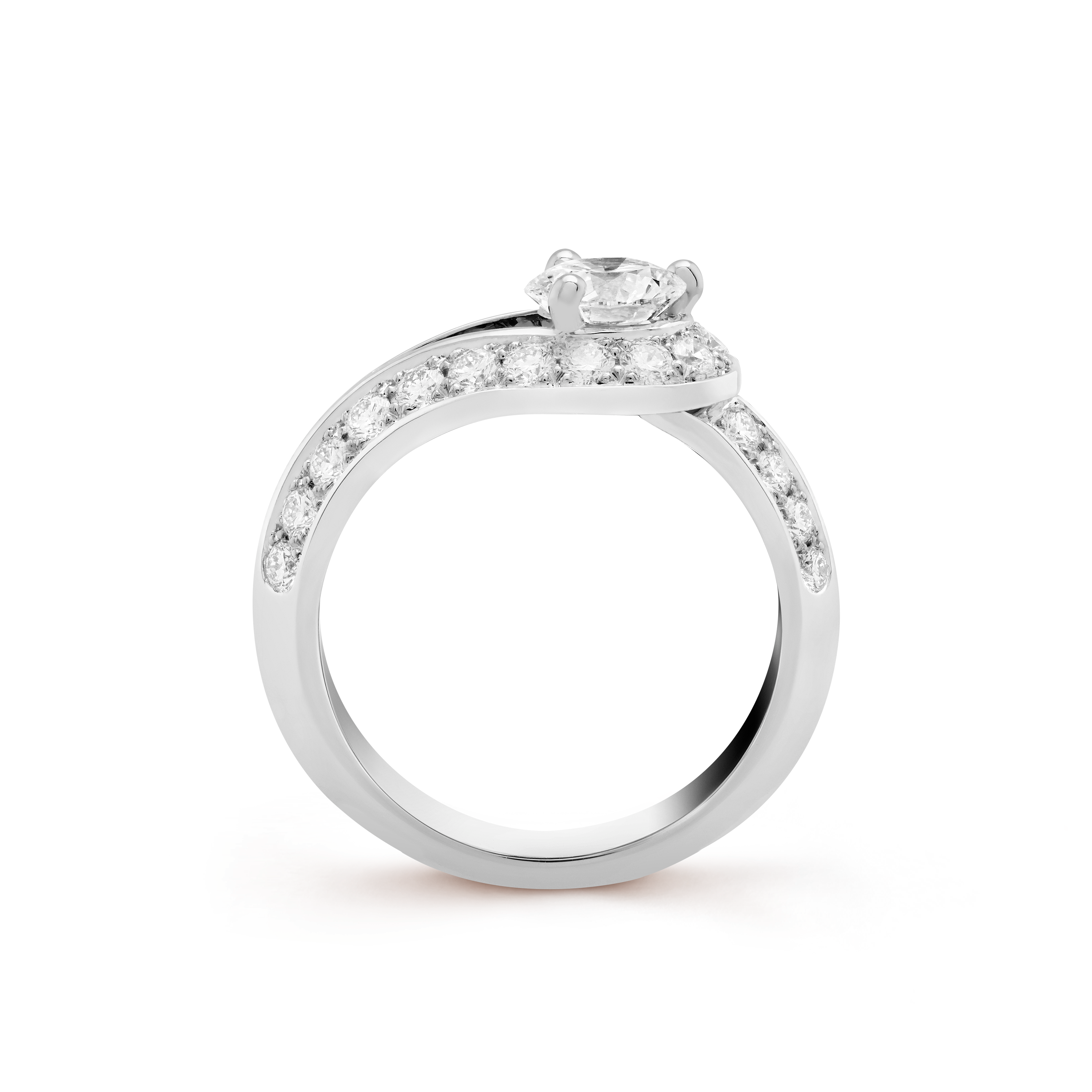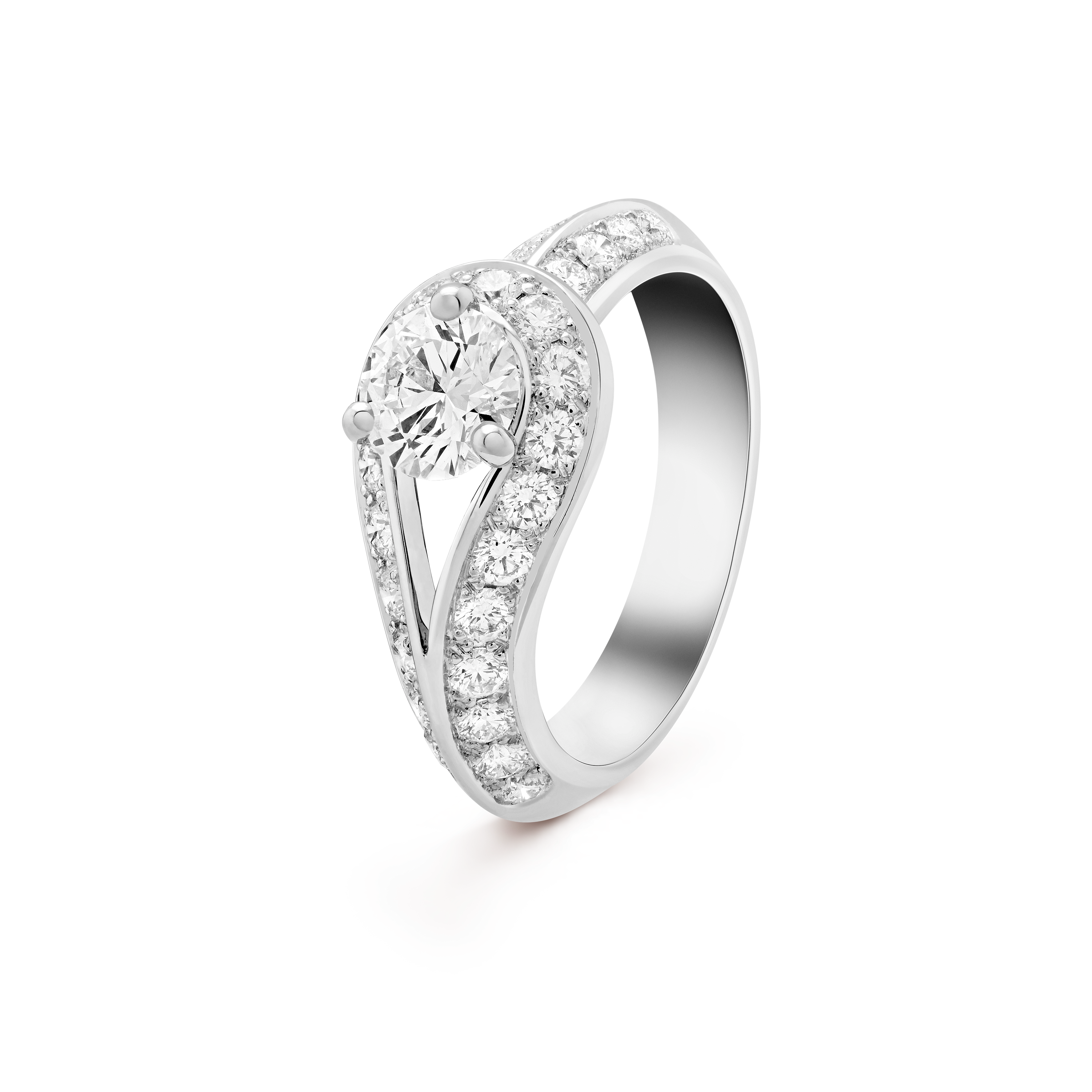 Reflecting all the grace and sophistication of the world of couture, the Couture collection brings a new and elegant twist to one of the Maison’s cherished sources of inspiration. With delicate harmony, a diamond ribbon flows and twists around the central diamond.