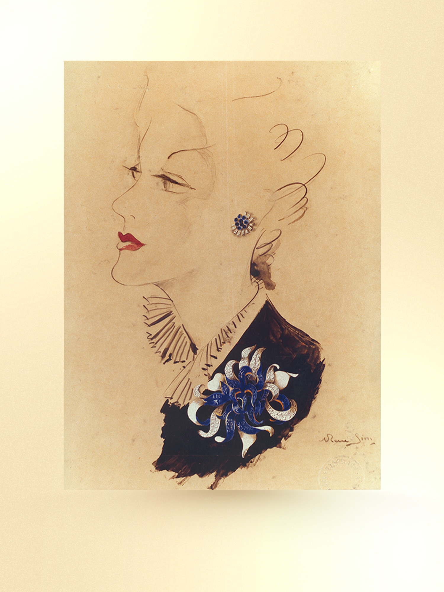 • Workshop card of one of the first creations in Mystery Set sapphires, 1934