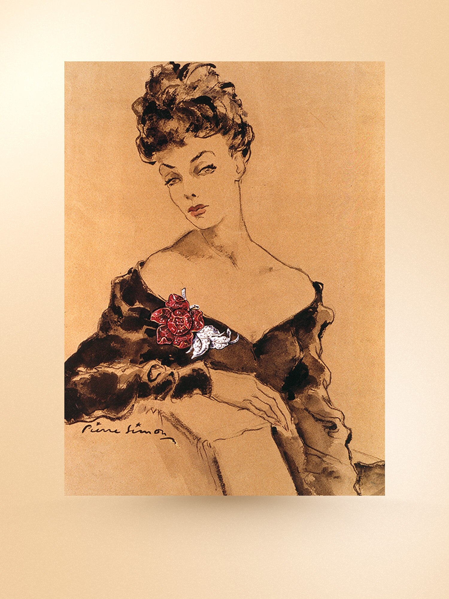 Dazzling flowers, feathers fluttering in the wind, whirling leaves and more: the Mystery Set technique imbues nature-inspired creations with three-dimensional dynamism, like the double Peony clip created in 1937.