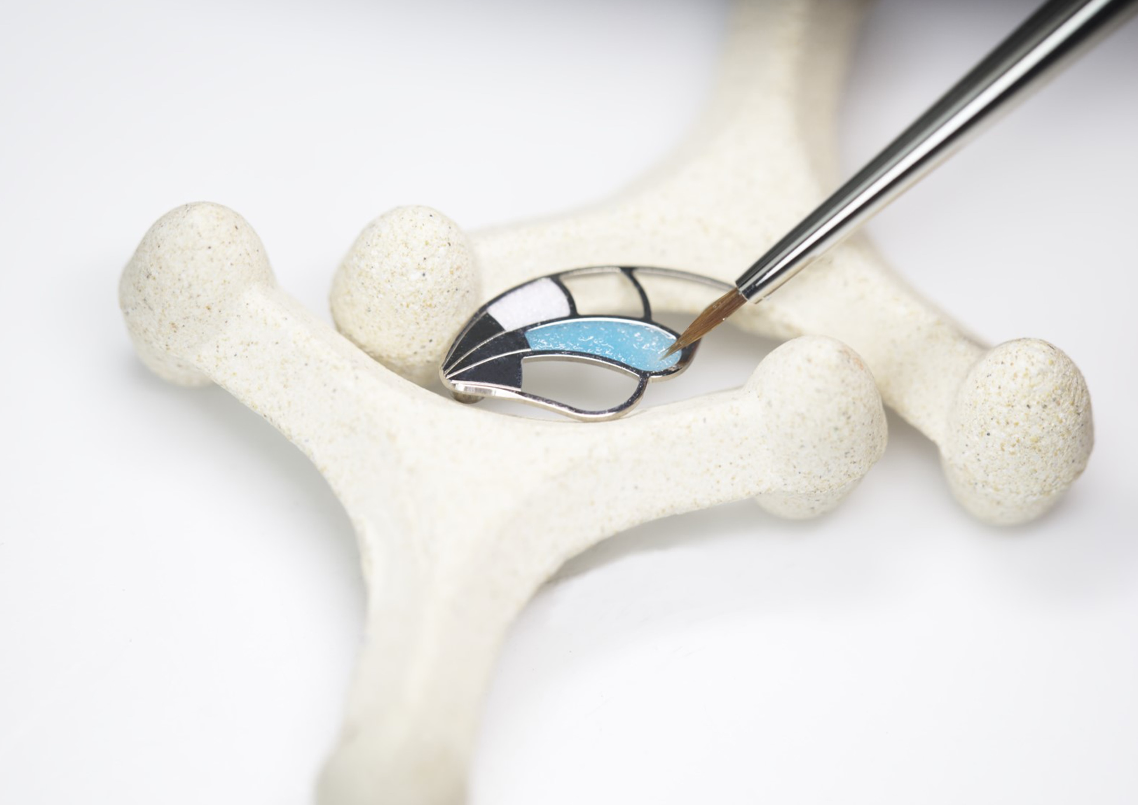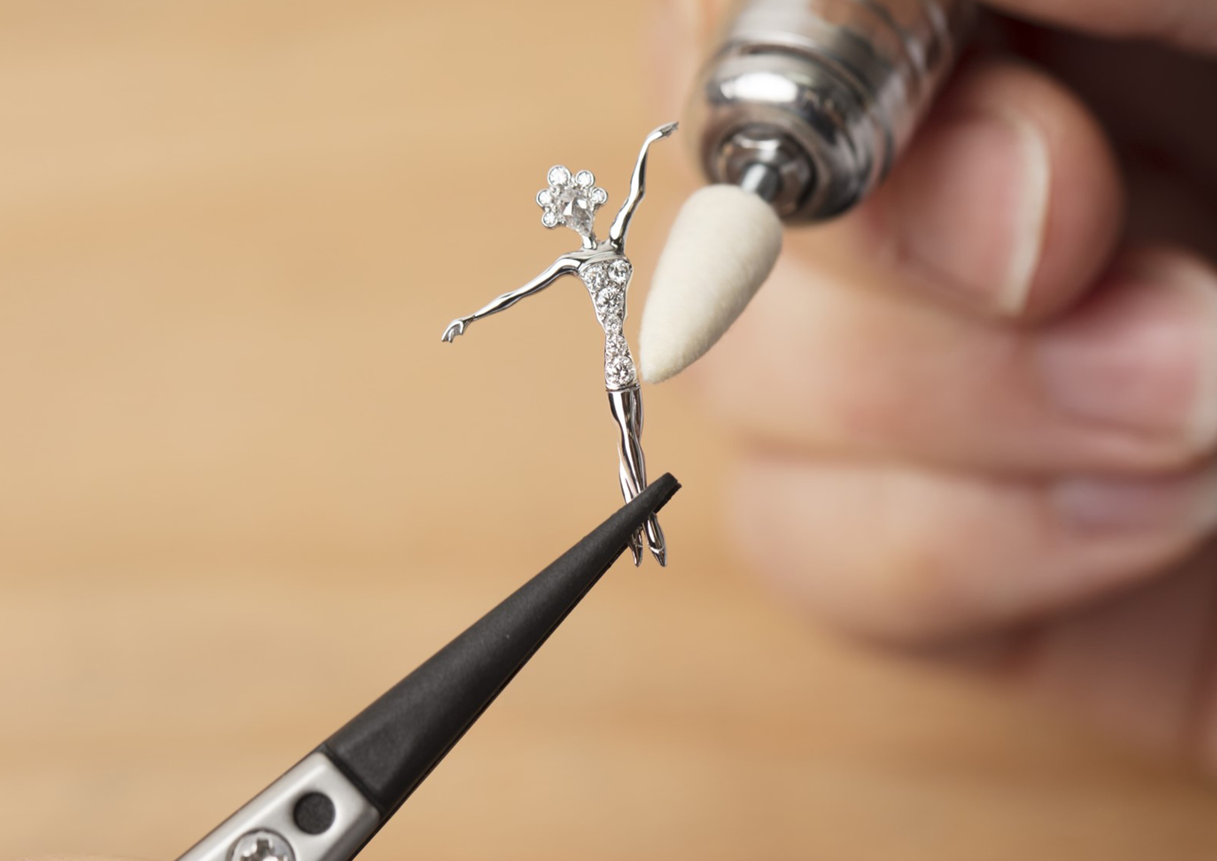 On the new models, the ballerina’s body is sculpted in relief in gold, while her headdress, face, bust and waist are suggested by diamonds. She stretches her arms out gracefully, above the veils of her tutu, which are superimposed with an effect of transparency.