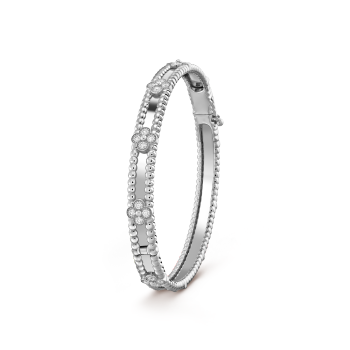An ode to femininity, the Olympia High Jewelry collection created by Van Cleef & Arpels is made up of elegant oval rings set with diamonds. Their pure, sparkling curves are delicately interwoven with a graphic effect.