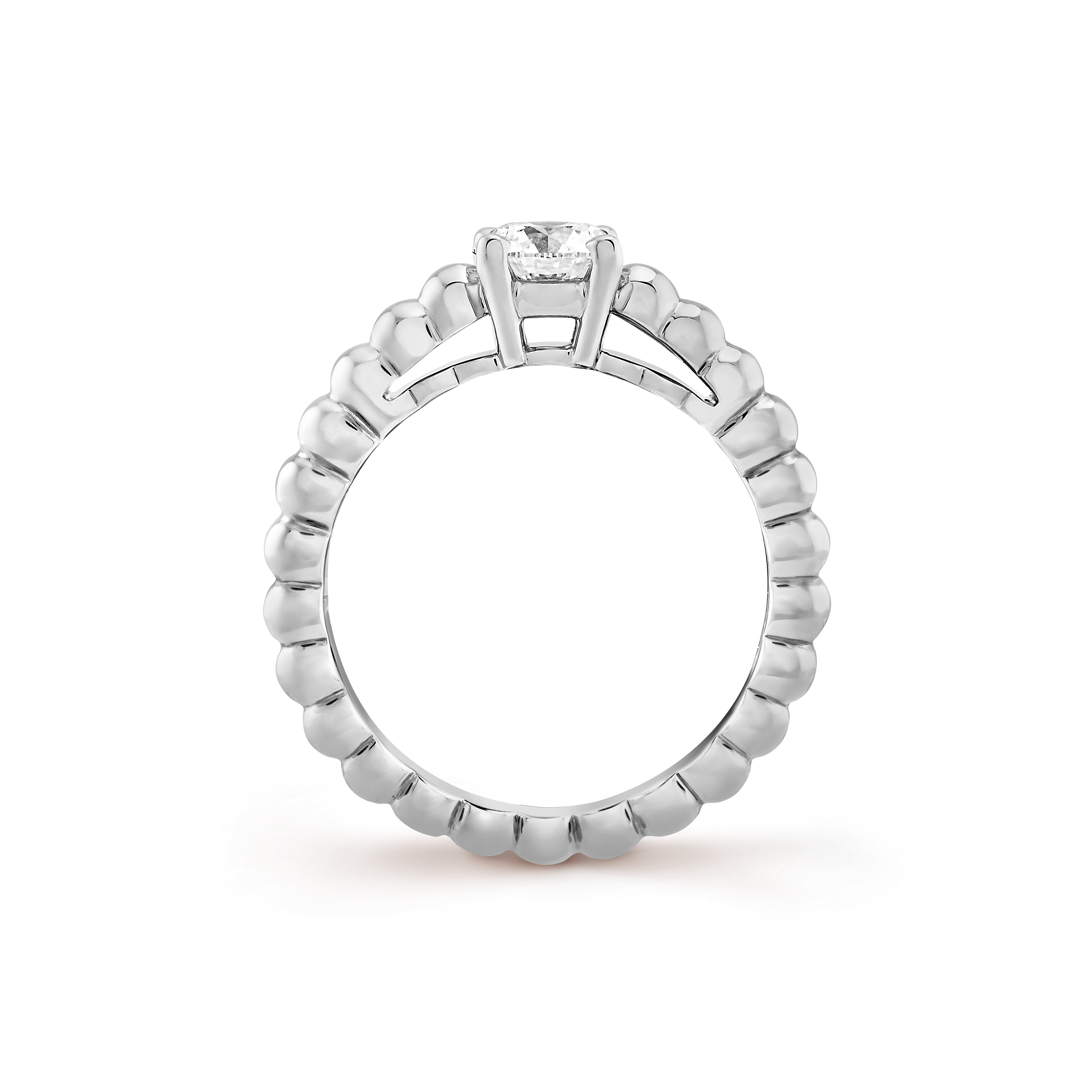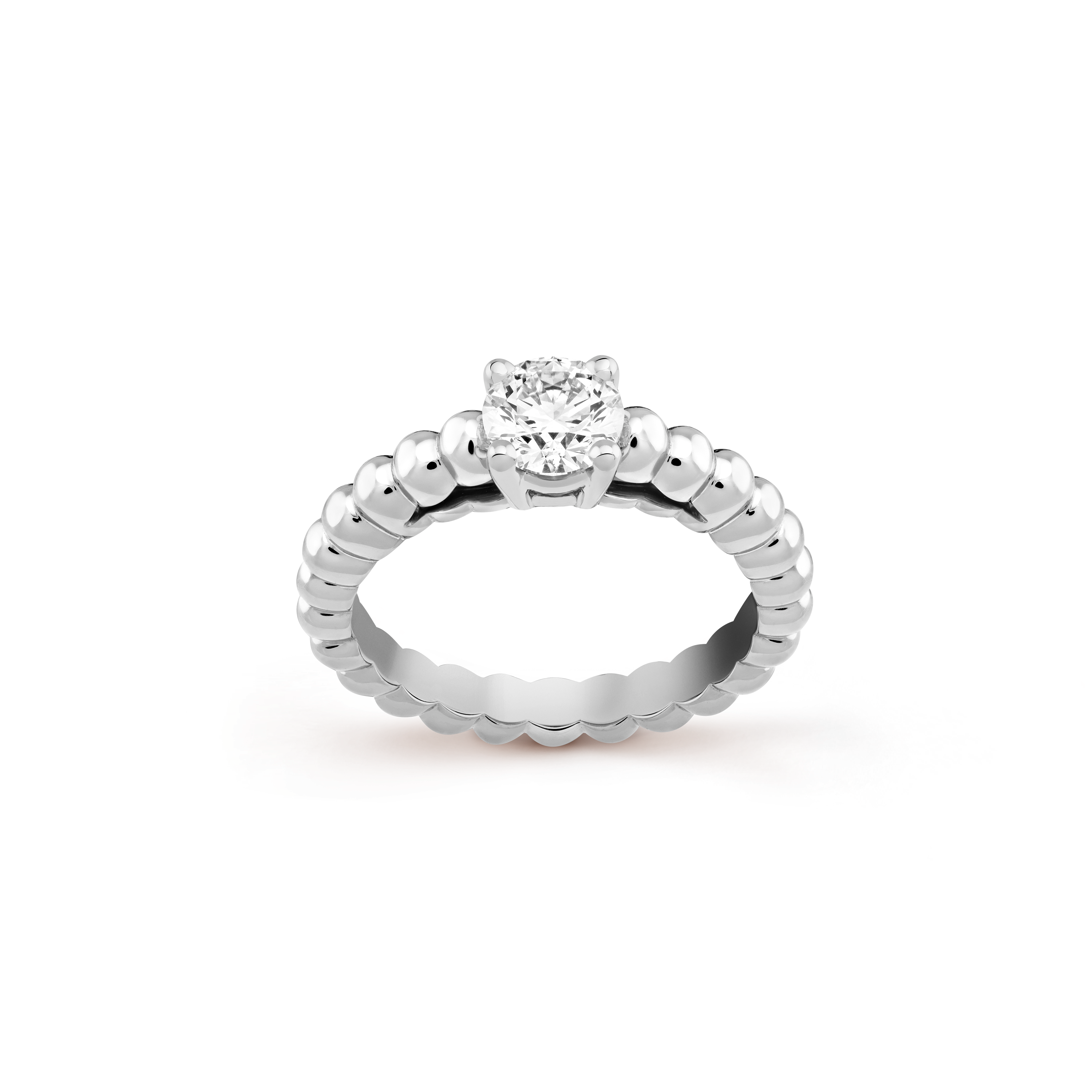 With curved lines, the Perlée® solitaire celebrates an emblematic skill of the Maison: pearls of gold, which adorn the outline of many a creation, in a soft, playful vision of jewelry. The shimmering beaded ring accentuates a superb center diamond.
