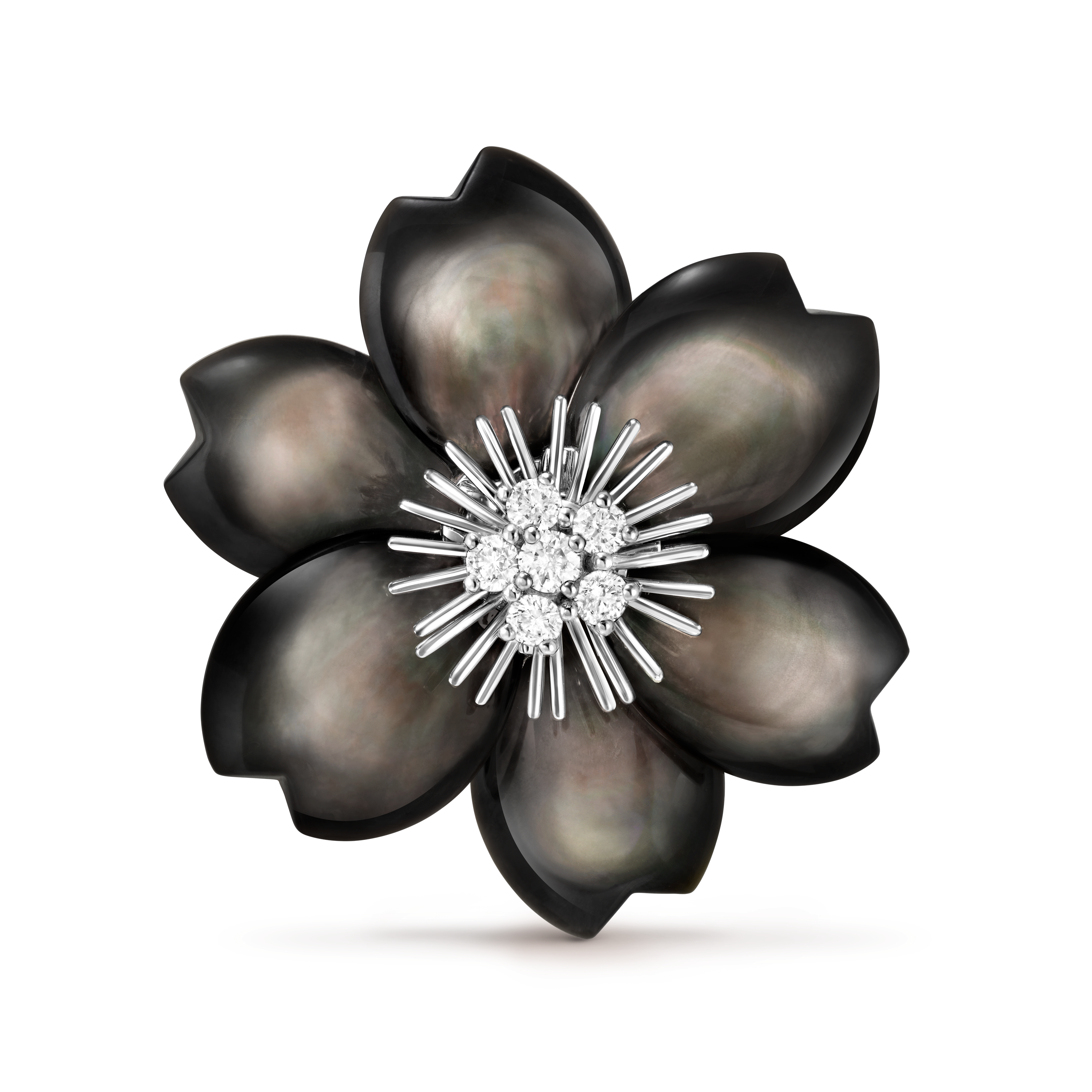 Rose de Noël clip, medium model 18K white gold, Diamond, Mother-of-pearl
